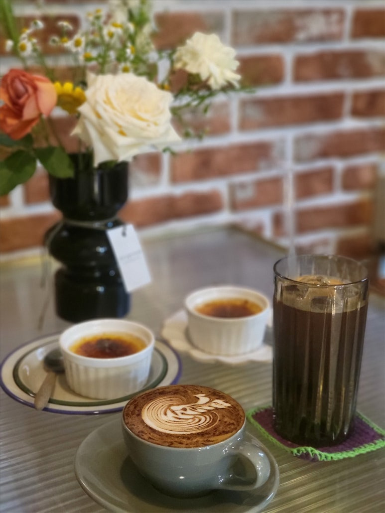 저희는 따뜻한 카푸치노와 아아, 크림 브륄레 2개를 주문했습니다.