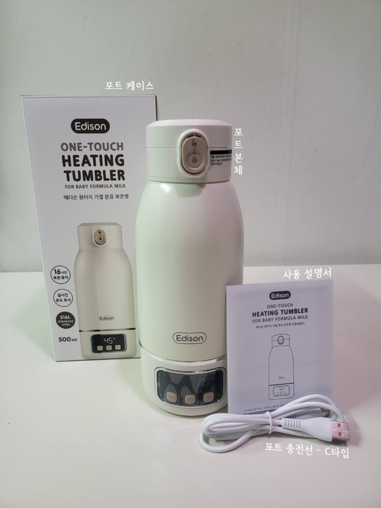 에디슨 휴대용 분유포트 원터치 가열 분유 보온병