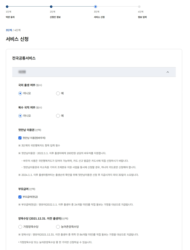 ※ 양육 수당은 2021년 12월 31일 이전 출생자만 체크하는 거라 아무것도 체크 안하시면 됩니다!